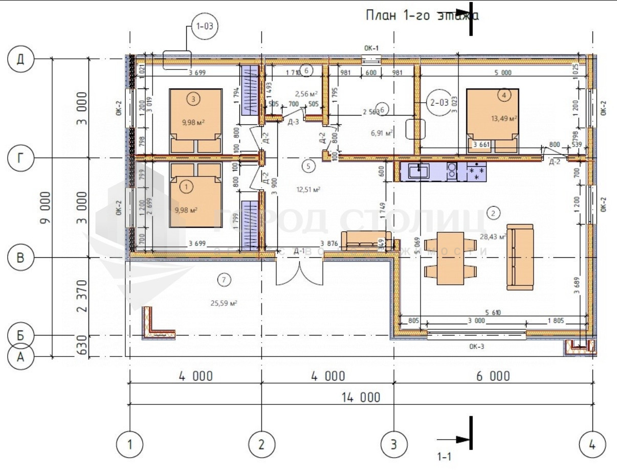 - Функциональная планировка с несколькими спальнями и зоной для отдыха.